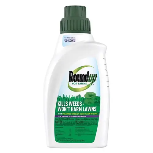 Roundup for lawns is a formula designed specifically for southern grasses that kills weeds, not the lawn. It controls over 90 common lawn weeds, roots and all and works fast on hard to kill weeds such as dollarweed, dandelion, clover and yellow nutsedge. It can be used with confidence on even the most delicate southern grasses, such as floratam and centipede. The concentrate formula is easy to mix and measure and is the best value when applying product to your entire lawn. One bottle covers up to 6000 sq-ft. This fast acting formula kills on contact and destroys weeds down to the root so they don't come back. In addition, its rainproof in as little as 4 hr Roundup for lawns is a simple step towards a beautiful, weed free lawn. Roundup for lawns works great on your lawns and even better in combination with Roundup weed and grass killer concentrate plus to kill weeds in your non lawn areas such as sidewalks, patios, driveways and garden beds, for weed killing options all around your home.