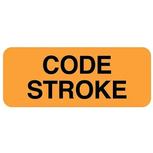 • Brightly colored label communicates the urgency of acting quickly for a stroke patient.