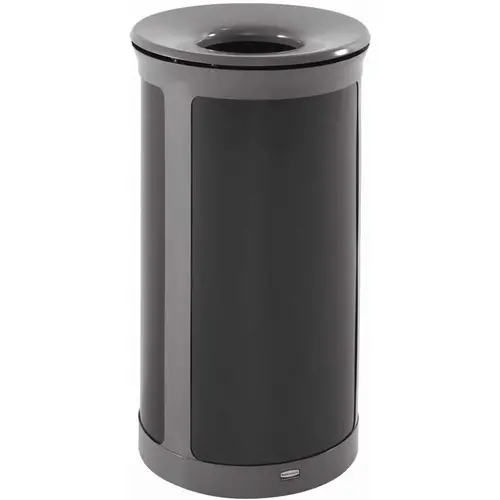 Rubbermaid Commercial Deco Indoor Trash Can 33 GAL Round Pearl Gray/Umbra Gray The Enhance Series Provides Premium Waste Receptacles That Complement The D cor Of Any Upscale Property. The Contrasting Frame And Panels Offer A Modern Appearance That Creates Visual Versatility. Three Shape Offerings Provide A Seamless Fit Throughout An Entire Facility. Floating lid gives the appearance of lightness and enables a pinch free close. The flare on the receptacle rim provides visual appeal and allows room for user s hand to easily grip the plastic liner during removal. Contrasting frame and panels create visual interest and complement a property s upscale look. Plastic liners enable easy lifting of liner bags to speed up waste removal and allow for easy one-step liner bag retention with efficient knot-free liner cinches. A powder-coat finish and resilient design helps stand up to daily use. An internal hinged lid design delivers visual consistency and quick waste removal. Leg levelers for adjustable stability on uneven surfaces. Mfg #2172852