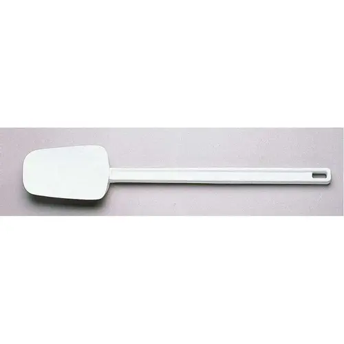 Food scraper and spatula features a true rubber blade molded directly onto the handle. This construction prevents bacteria and dirt build-up, providing a safer kitchen experience. The rubber spatula is entirely white and stain resistant. Each spatula is safe for use with commercial dishwashers. The seamless construction allows for a permanent bond.. Mfg #FG193300WHT