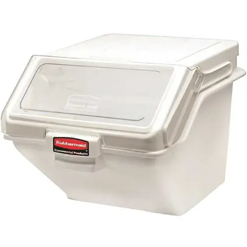 Rubbermaid FG9G5800WHT ProSave safety storage bin is perfect for securely storing smaller quantities of ingredients in your restaurant, bar, or buffet. It is built for improved safety and productivity with a new-patented sliding lid design that provides access to ingredients while the bin is stacked, on a shelf, or under a prep table.. This Unique Lid Design Also Allows For One-Handed Access To Ingredients While Bins Are Stacked For Faster, More-Efficient Use. Clear Windows And Ingredient Labels Allow For Easy Identification Of Contents, And An Integrated 2-Cup Safety-Portioning Scoop And Hook Within The Bin Provides Dedicated Scoop Storage For Safe, Sanitary Ingredient Portioning.. Mfg #FG9G5800WHT