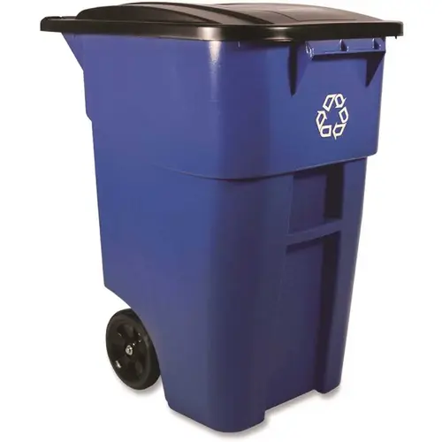 Rubbermaid Commercial Brute Recycling Rollout Container. Hinged Lid Fits Snugly And Swings Back To Lock Into Place.. Imprinted With The Universal Recycling Symbol.. Molded-In Axle And Inset Wheels Enhance Strength And Improve Maneuverability.. Compatible With Automated And Semi-Automated Lift Systems.. Mfg #RCP 9W27-73 BLU