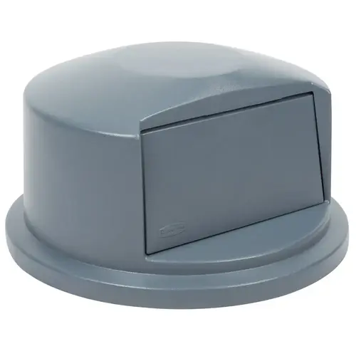 Dome-shaped lid is designed for Rubbermaid Brute 32 gallon waste containers (sold separately). All-plastic, professional-grade construction resists dents and will not rust, chip or peel. Lid snaps on easily and offers secure, stable stacking. Self-swing closing door allows easy trash disposal while keeping odors in and insects, water and rodents out.
