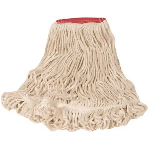 This string mop outperforms and outlasts premium cut-end mops 2 to 1. Balanced blend of cotton and synthetic yarns for absorbency and strength. Looped ends and yarn tailband mop for greater floor coverage.