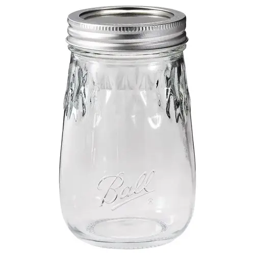 Ball 4 Pack 16 oz. Pint Flute Jar. A unique jar shape to inspire drinkware, gifting and crafting. The stemless wine glass appearance exudes elegance. Includes silver lids.