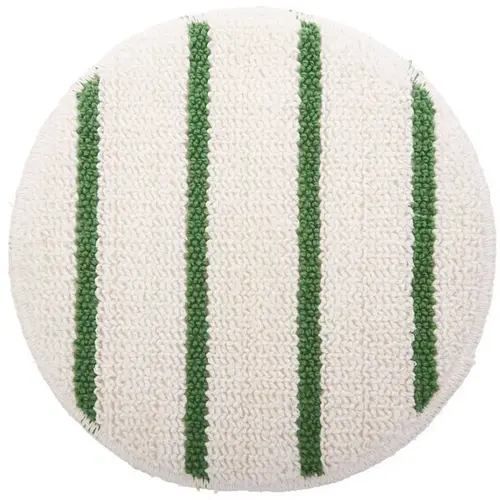 This heavy-duty carpet bonnet with scrub strips has a balanced rayon, nylon and polyester blended yarn that work with either shampoo or solvent based cleaning chemicals for tough cleaning. Polypropylene scrub strips provide additional cleaning action. These low-profile bonnets allow better operator control.