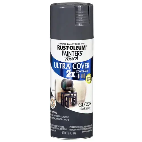 Rust-Oleum 334031 PAINTER'S Touch Gloss Spray Paint, Gloss, Dark Gray, 12 oz, Aerosol Can