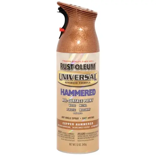 It's never been easier to bring a hand-hammered look to your all your projects. RUST-OLEUM UNIVERSAL hammered spray paint is a paint and primer in one that provides superior coverage and durability on any surface and at any angle with the unmatched comfort of our patented trigger technology.