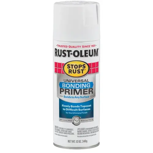 Rust-Oleum 285011 STOPS RUST Universal Bonding Primer, White, Flat/Matte, 12 oz