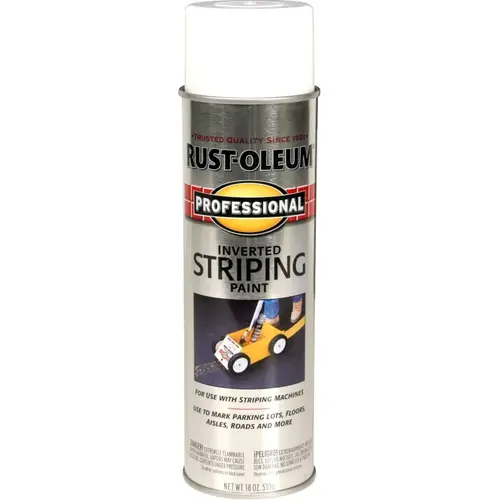 Easily mark parking lots, roads, paths and more with Rust-Oleum Professional striping paint spray. This convenient aerosol produces durable, long-lasting bright lines that withstand weather and wear. Sprays upside-down for easy use.