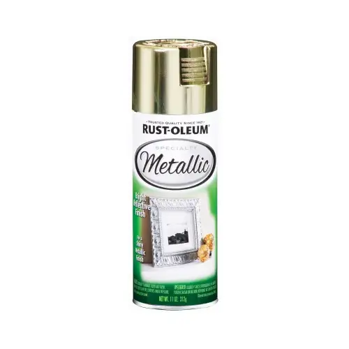 RUST-OLEUM Specialty metallic spray provides rich, shiny finish for decorating and accent pieces. Apply to wood, metal, plaster, masonry or unglazed ceramic. Made with real metal leafing flakes.