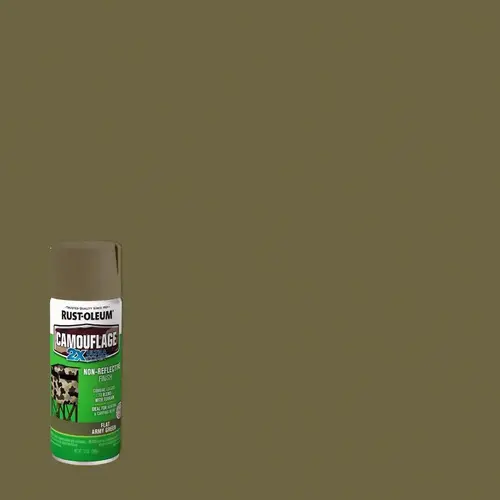 RUST-OLEUM Specialty Camouflage Spray provides a non-reflective, ultra-flat finish for maximum hiding. Applies to metal, wood, plaster or masonry. Offers long-lasting protection when applied on top of primer.