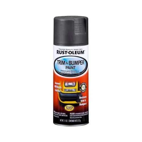 RUST-OLEUM Trim and bumper paint is designed to renew and restore the OEM finishes found on many vehicles. Trim and bumper paint is ideal for metal trim, moldings, rearview mirror covers and rub strips. RUST-OLEUM Trim and bumper paint features an advanced spray system that allows you to spray at any angle, even upside down for those hard-to-reach areas. A comfort spray tip with a wider finger pad reduces fatigue caused by continuous spraying.