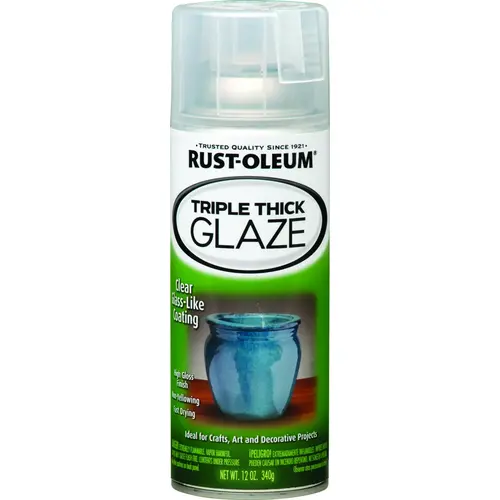 Easily create a baked-glaze finish without the heat with RUST-OLEUM Specialty triple thick glaze spray. This crystal clear, extra-thick aerosol creates a glass-like coating that is both decorative and protective.