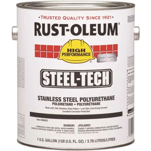 Steel-Tech Metallic Gray Stainless Steel Polyurethane is an innovative coating infused with stainless-steel flakes to provide armor-like protection in harsh environments. Steel-Tech is a low-odor, one-component system no mixing required. Not for use on concrete, masonry or galvanized steel.