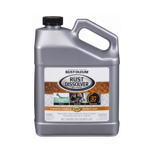 Quickly penetrates every void of metal surface to dissolve rust FAST. The powerful, proprietary formulation takes the hard work out of rust removal and transforms surfaces to like-new condition. RUST-OLEUM rust dissolver bath is a specially formulated water-based product designed to dissolve and remove rust and oxidation on a variety of surfaces. It is suitable for use on iron, steel, aluminum, chrome, galvanized metal, porcelain, tile, fiberglass, glass, auto cooling systems and firearms. Apply by brush or as a bath. RUST-OLEUM rust dissolver gel and jelly clings to iron, steel and other metals to make rust removal convenient, fast and effective.