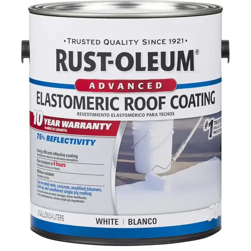 RUST-OLEUM 750 elastomeric roof coating provides a high initial reflectivity value of 75%, energy efficiency, long term durability and excellent resistance to weathering and dirt pick-up. This elastomeric roof coating is formulated to meet and/or exceed the standards established in ASTM D 6083. RUST-OLEUM 750 elastomeric roof coating waterproofs and weatherproofs metal, weathered single ply membranes as well as smooth surface asphalt built-up and modified bitumen roofing substrates.