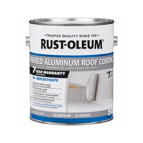 RUST-OLEUM 510 fibered aluminum roof coating is a metallic pigmented coating used for rust-proofing and weatherproofing metal roofs and sidewalls and as a reflective coating for built-up roofing (BUR) and modified bitumen roof systems. RUST-OLEUM 510 fibered aluminum roof coating reflects heat, prevents corrosion and protects against mild acid and alkali fumes on a variety of substrates, including metal, transite, built-up roofing and modified bitumen. This reflective coating protects low and steep slope roofs from harmful UV damage while supporting overall energy efficiency.