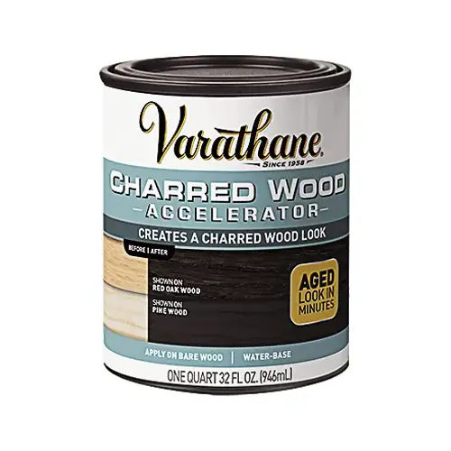 VARATHANE charred wood accelerator creates a weathered, charred black appearance on bare or untreated wood. It replicates the natural charring process by reacting with the tannins of the wood to create a unique one-of-a-kind blackened char color.