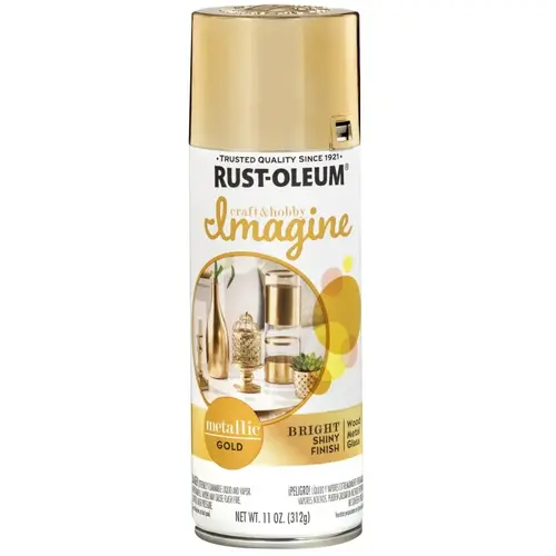 RUST-OLEUM Spray Paint, Net Content: 11 oz, Gold, Odor/Scent: Solvent-Like, Sheen: Metallic, Compositions: Propane, Acetone, Toluene, n-Butane, Dimethyl Carbonate, Naphtha, Petroleum, Hydrotreated Light , n-Butyl Acetate, Copper Compounds, Solvent Naphtha, Light Aromatic, Zinc, 1,2,4-Trimethylbenzene, Octane, Flash Point: -96 deg C, Boiling Point: -37 to 150 deg C, Flammability Rating: 4, Temperature Rating: <50 deg C, Specific Gravity: 0.734
