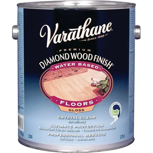 Achieve ultimate durability in a water base with RUST-OLEUM VARATHANE crystal-clear floor finish. Thanks to patented aluminum oxide nano technology, this polyurethane outperforms leading brands with maximum adhesion resistance in high-traffic areas.