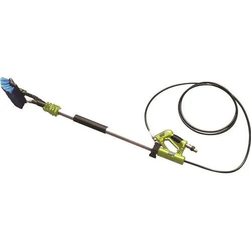 The RYOBI Telescoping Extension Pole is the perfect accessory for those hard to clean places. The pole telescopes using locking levers, so you can adjust to the perfect length giving you reach up to 18 ft. The tool is lightweight and features an ergonomic handle with in inverted trigger, which relieves pressure on your hand and fingers. with the included brush attachment, you can clean a variety of surfaces with ease. The RYOBI Telescoping Extension Pole is compatible with most electric and gas pressure washers up to 4200 psi.