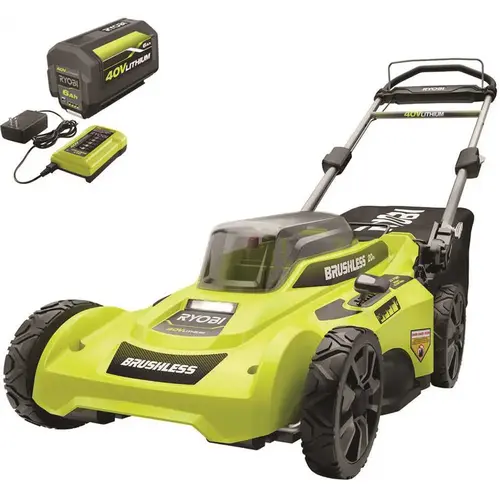Cut down your grass in less time with this Ryobi 40V self-propelled lawn mower. It offers a push-button start and an easy-lift lock-and-release bagger for removing a bag in a single motion. With single-point height adjustment, you can choose between seven grass heights. The vertical design and collapsing telescoping handles make it easy to store. For easy battery exchange, this lawn mower features an on-board battery storage compartment.