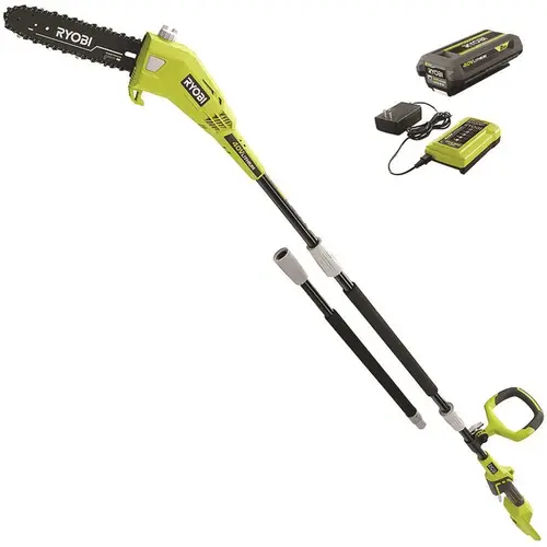 Tackle all of your pruning and limbing jobs with the RYOBI 40V Pole Saw. This saw easily extends from 6.5 ft. to 9.5 ft, allowing you to trim hard to reach places. The powerful in-line motor and angled cutting head allow for precise cutting with the 10 in. bar and chain. This pole saw features an automatic bar and chain oiler, for convenient operation and maintenance. This tool is compatible with all 40V batteries. The RYOBI 40V Pole Saw is backed by a 5-year warranty.