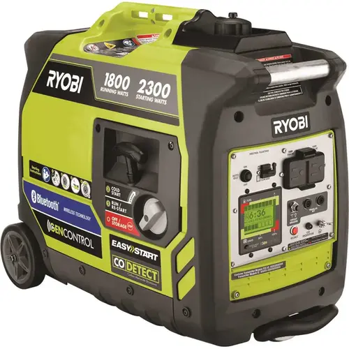 Whether you are tailgating, camping or on the jobsite, the RYOBI Bluetooth 2,300-Watt Inverter Generator is ready with clean, quiet power for any occasion. With 2,300 Starting Watts and 1,800 Running Watts, this generator is whisper quiet and is safe for most sensitive electronics. Conveniently monitor power consumption, fuel level, runtime remaining and even remotely shut off your generator with the GENControl app on your Apple or Android smart phone. This Inverter is equipped with Idle-Down technology for increased fuel efficiency and rear wheels with an extending handle for easy transportation. It is also parallel capable, so when larger power demands are needed you can link 2 RYOBI inverter generators together for twice the power. Backed by a 3-year Manufacturer Warranty.