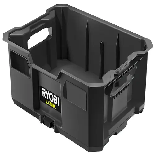 RYOBI LINK Tool Crate. Impact Resistant Material. 50 Lb. Load Capacity. Stackable On Ryobi Link Mobile Storage. Easily Move From Mobile To Wall With Integrated Handles. Mfg #STM104