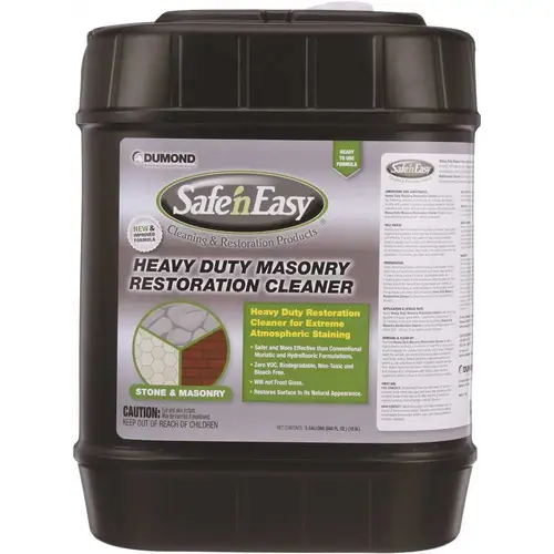 Safe n Easy Heavy-Duty Masonry Restoration Cleaner is a ready-to-use formulation specifically for extreme atmospheric dirt and staining. This product delivers maximum speed and performance when cleaning a wide variety of unpolished masonry substrates. Safe n Easy Heavy-Duty Masonry Restoration Cleaner is low odor, biodegradable, bleach free and more effective than conventional muriatic and hydrofluoric formulations. This user-friendly cleaner can be applied by a pump sprayer, brush, or roller and is ideal when performing masonry preservation and restoration projects. Safe n Easy Heavy-Duty Masonry Restoration Cleaner cleans without pitting, frosting or altering the surface texture and restores the substrate to its natural appearance.