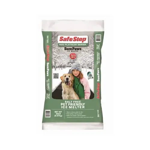 All-natural, fast-acting Sure Paws is gentler on pet paws and skin and clears driveways and walkways quickly and efficiently. This premium ice melter was developed using a patented formula and is also gentler on concrete and vegetation when used as directed.