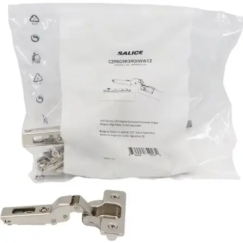 Salice C2R6G9R3R0HWW12 Half O/L Concealed Self Closing Frameless Hinge, Dowels Nickel - pack of 2