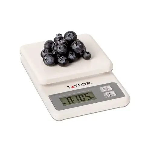 Slim, lightweight and portable, our compact digital scale is ideal for a wide range of uses, from portion control to arts and crafts and more. This digital scale measures up to 11 lb/5 kg in 0.1 oz/1 g increments. A large 0.9 in LCD display is easily viewable from a distance. Additional features include a tare function and an auto-off function to preserve battery power. The scale measures 6-1/4 in by 4 in by 1 in, small enough to fit in a purse or cargo pocket. One CR2032 mercury-free, Lithium battery included.
