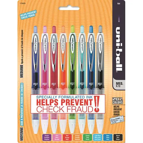 Features Uni-Super Ink that helps prevent against check and document fraud. Stylish, textured grip provides exceptional writing comfort and control. Semi-translucent barrel allows you to monitor ink supply and see when you're running low. Gel ink is fade-proof and water-resistant, preventing your documents from smudging. Special Ink Type: Gel; Pen Style: Retractable; Ink Color(s): Assorted; Pen Type: Roller Ball.