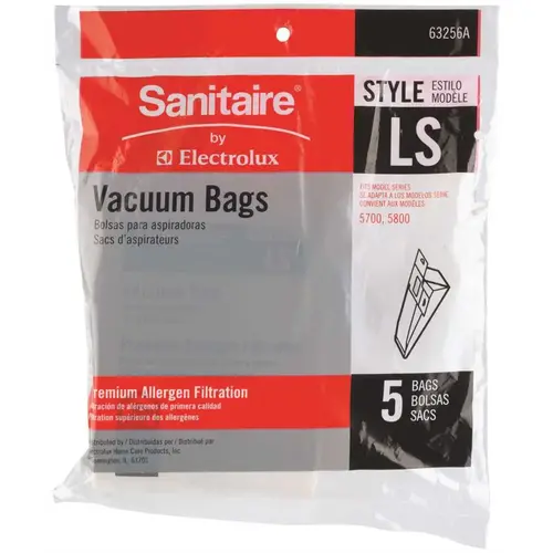Paper bag fits the any Sanitaire Upright Bagged Vacuum 5700 or 5800 series, including SC5713A. Incorporated allergen filtration makes sure no dust or debris escape. Dust bag is easy to change, sliding into place. Capacity is 4.5 Qt.