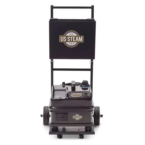 Sanitaire US Steam Eagle Commerical Steam Cleaner. Chemical-Free Cleaning: Reduces The Need And Costs For Harmful Cleaning Agents. nd Convenience: Continuous Re-Filling Two Tank Technology Ensures That Your Cleaning Tasks Are Completed Swiftly And Without Reheating Delays. Mobility: Designed With Robust Materials And A Practical Utility Cart For Ease Of Use Across Various Job Sites. . hips With A Complete 14-Piece Accessory Kit Suitable For Every Steam Cleaning Task You Throw At It. . 6 Bar / 90 Psi Steam Pressure - Ensures Robust Deep Cleaning Power For The Toughest Jobs. 325Degree F Steam Temperature - Delivers High-Heat Steam With Lower Moisture Than Similar, Lower Temperature Product. This Two Tank Technology Allows For No Downtime Between Heating Cycles, Keeping One Tank Up To Temperature And A Separate Cold Tank For Additional Water Storage That Will Supply As Needed To Support The Steam Tank. Stainless Steel Casing And Heavy-Duty Utility Cart. Compact And Portable Design. Mfg #ES6100