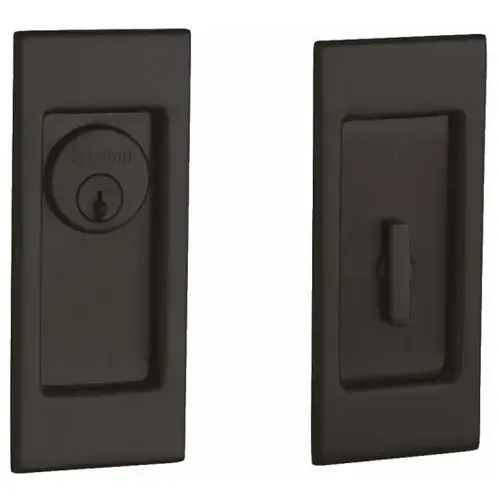 Keyed Entry (Single Cylinder) Function: This pocket door lock can be locked and unlocked with a key from the exterior and a thumbturn on the interior.Doors must be at least 1-3/4" thick for Flush Mounting. Standard Mounting accommodates doors 1-3/8" to 2-1/2" thick.Solid Forged Brass Construction: All Baldwin hardware begins with raw bars of solid brass which are heated, and pounded into specially made dies—producing a stronger, more substantial product. The difference between lesser metals and heat forged brass is noticeable the minute you hold it in your hands—solid brass is heavier, smoother, and naturally resists corrosion.Lifetime Finishes™: Baldwin's multi-patented Lifetime Finishes™ provide unprecedented protection against the effects of weather, normal wear and tear, and even the rigorous test of coastal salt air. By adapting the vapor deposition processed used to create premium gold pens, Baldwin creates a unique surface across your door hardware that is guaranteed to withstand the ravages of time.Living Finishes: Baldwin Living Finishes, which include Non-Lacquered Brass, Vintage Brass, Oil Rubbed Bronze, and Distressed Oil Rubbed Bronze, are designed to mimic the patina of a well-loved piece of vintage hardware, and as such will change and adapt over time naturally. For those who appreciate the well-worn look of aged door hardware, but still require the strength and durability of a Baldwin finish, Living Finishes are an ideal fit.There are brand names, and then there is Baldwin. Constantly building and re-building upon a time tested legacy of superior design, craftsmanship, functionality and innovation, Baldwin Hardware has delivered modern luxury to discriminating homeowners, architects and designers since 1946. From being the first to forge solid brass door hardware to setting precedence for Lifetime Finishes, Baldwin has been and always will be synonymous with revolutionary technology and unsurpassed quality. Aspire to make your home much more than mere shelter, and relax in the assurance that function and elegance can finally flourish within the same line of fine products—Baldwin can show you how.