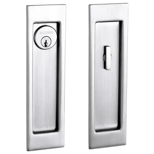 Keyed Entry (Single Cylinder) Function: This pocket door lock can be locked and unlocked with a key from the exterior and a thumbturn on the interior.Solid Forged Brass Construction: All Baldwin hardware begins with raw bars of solid brass which are heated, and pounded into specially made dies—producing a stronger, more substantial product. The difference between lesser metals and heat forged brass is noticeable the minute you hold it in your hands—solid brass is heavier, smoother, and naturally resists corrosion.Lifetime Finishes™: Baldwin's multi-patented Lifetime Finishes™ provide unprecedented protection against the effects of weather, normal wear and tear, and even the rigorous test of coastal salt air. By adapting the vapor deposition processed used to create premium gold pens, Baldwin creates a unique surface across your door hardware that is guaranteed to withstand the ravages of time.Living Finishes: Baldwin Living Finishes, which include Non-Lacquered Brass, Vintage Brass, Oil Rubbed Bronze, and Distressed Oil Rubbed Bronze, are designed to mimic the patina of a well-loved piece of vintage hardware, and as such will change and adapt over time naturally. For those who appreciate the well-worn look of aged door hardware, but still require the strength and durability of a Baldwin finish, Living Finishes are an ideal fit.There are brand names, and then there is Baldwin. Constantly building and re-building upon a time tested legacy of superior design, craftsmanship, functionality and innovation, Baldwin Hardware has delivered modern luxury to discriminating homeowners, architects and designers since 1946. From being the first to forge solid brass door hardware to setting precedence for Lifetime Finishes, Baldwin has been and always will be synonymous with revolutionary technology and unsurpassed quality. Aspire to make your home much more than mere shelter, and relax in the assurance that function and elegance can finally flourish within the same line of fine products—Baldwin can show you how.