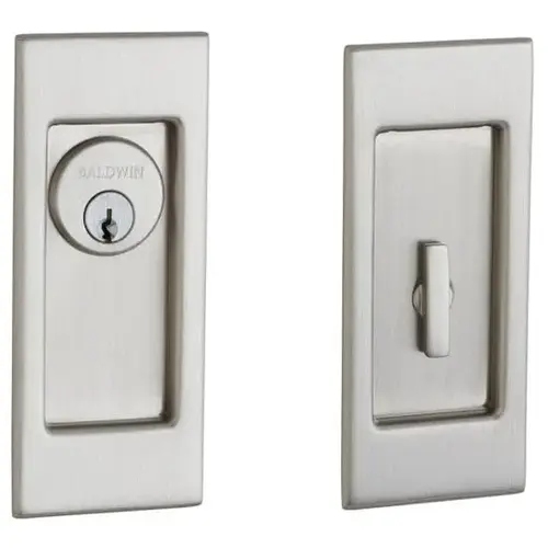 Keyed Entry (Single Cylinder) Function: This pocket door lock can be locked and unlocked with a key from the exterior and a thumbturn on the interior.Doors must be at least 1-3/4" thick for Flush Mounting. Standard Mounting accommodates doors 1-3/8" to 2-1/2" thick.Solid Forged Brass Construction: All Baldwin hardware begins with raw bars of solid brass which are heated, and pounded into specially made dies—producing a stronger, more substantial product. The difference between lesser metals and heat forged brass is noticeable the minute you hold it in your hands—solid brass is heavier, smoother, and naturally resists corrosion.Lifetime Finishes™: Baldwin's multi-patented Lifetime Finishes™ provide unprecedented protection against the effects of weather, normal wear and tear, and even the rigorous test of coastal salt air. By adapting the vapor deposition processed used to create premium gold pens, Baldwin creates a unique surface across your door hardware that is guaranteed to withstand the ravages of time.Living Finishes: Baldwin Living Finishes, which include Non-Lacquered Brass, Vintage Brass, Oil Rubbed Bronze, and Distressed Oil Rubbed Bronze, are designed to mimic the patina of a well-loved piece of vintage hardware, and as such will change and adapt over time naturally. For those who appreciate the well-worn look of aged door hardware, but still require the strength and durability of a Baldwin finish, Living Finishes are an ideal fit.There are brand names, and then there is Baldwin. Constantly building and re-building upon a time tested legacy of superior design, craftsmanship, functionality and innovation, Baldwin Hardware has delivered modern luxury to discriminating homeowners, architects and designers since 1946. From being the first to forge solid brass door hardware to setting precedence for Lifetime Finishes, Baldwin has been and always will be synonymous with revolutionary technology and unsurpassed quality. Aspire to make your home much more than mere shelter, and relax in the assurance that function and elegance can finally flourish within the same line of fine products—Baldwin can show you how.