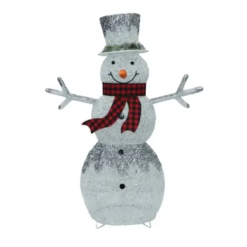 Santas Forest 56920 Pre-Lit Glitter Frosted Snowman, White, LED, Internal Light