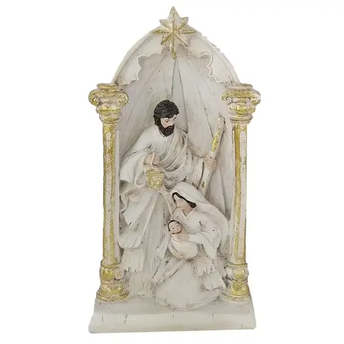 Santas Forest Nativity Scene, Home Decor, Design/Theme: Nativity Scene Figurine, Resin, White/Gold, 6 in L, 13.5 in H, Suitable for: Christmas Decor
