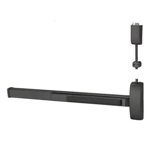 Grade 1 Surface Vertical Rod Exit Device, Wide Stile Pushpad, 48" Fire-Rated Device, 84" Door Height, Dummy Function, W Lever with Escutcheon, Less Bottom Rod, Less Dogging, Black Suede Powder Coat Finish, Right Hand Reverse