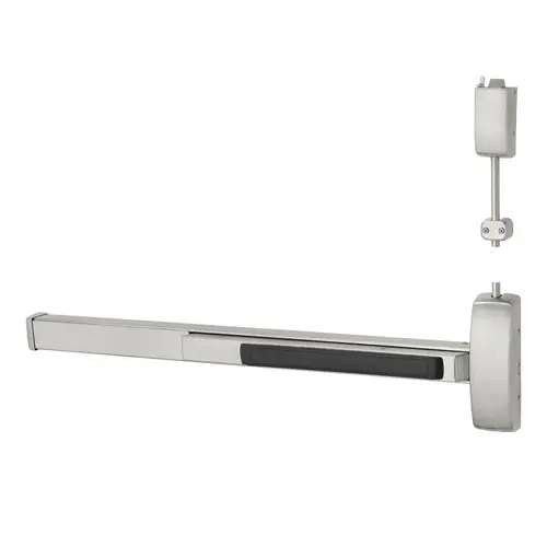 Grade 1 Surface Vertical Rod Exit Device, Wide Stile Pushpad, 42" Fire-Rated Device, 84" Door Height, Device to Accept Electrified Trim Function, P Non-Keyed Electric Lever, Less Bottom Rod, Fail Secure, Less Dogging, Bright Stainless Steel Finish, Left Hand Reverse