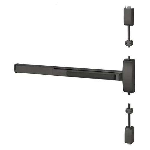 Grade 1 Surface Vertical Rod Exit Device, Wide Stile Pushpad, 42" Fire-rated Device, 120" Door Height, Passage Function, F Lever with Escutcheon, Electric Latch Retraction, Less Dogging, Black Suede Powder Coat Finish, Left Hand Reverse