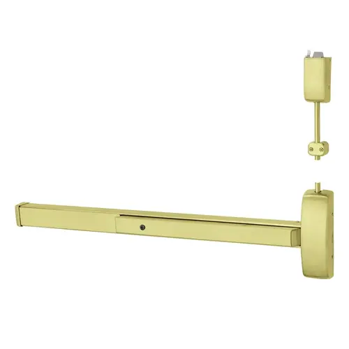 Grade 1 Surface Vertical Rod Exit Device, Wide Stile Pushpad, 48" Device, 84" Door Height, Device to Accept Electrified Trim Function, A Non-Keyed Electric Lever, Less Bottom Rod, Flush End Cap, Fail Safe, Hex Key Dogging, Less Lexan Push Pad Touchbar, Satin Brass Finish, Right Hand Reverse