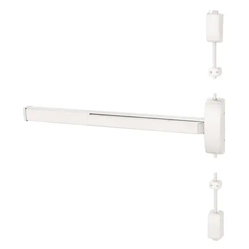 Grade 1 Surface Vertical Rod Exit Device, Wide Stile Pushpad, 42" Device, 120" Door Height, Storeroom Function, B Freewheeling/Vandal Resistant Lever, Electric Latch Retraction, Less Dogging, Less Lexan Push Pad Touchbar, White Suede Powder Coat Finish, Right Hand Reverse