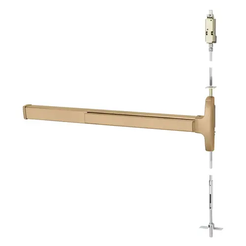 Grade 1 Concealed Vertical Rod Exit Device, Narrow Stile Pushpad, 36" Device, 120" Door Height, Device to Accept Electrified Trim Function, J Non-Keyed Electric Lever, Fail Secure Electric Latch Retraction, Less Dogging, Less Lexan Push Pad Touchbar, Satin Bronze Clear Coated Finish, Right Hand Reverse