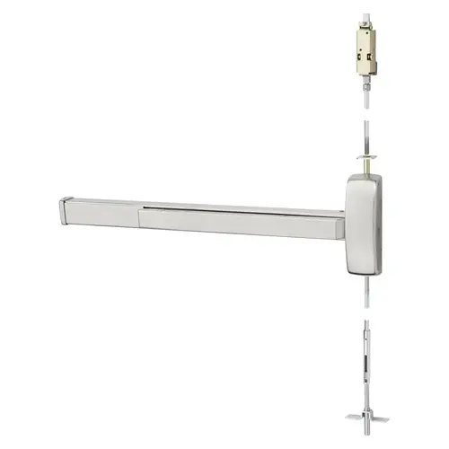 Grade 1 Concealed Vertical Rod Exit Bar, Wide Stile Pushpad, 48" Device, 120" Door Height, Storeroom Function, F Lever with Escutcheon, Electric Latch Retraction, Less Dogging, Less Lexan Push Pad Touchbar, Satin Stainless Steel Finish, Right Hand Reverse