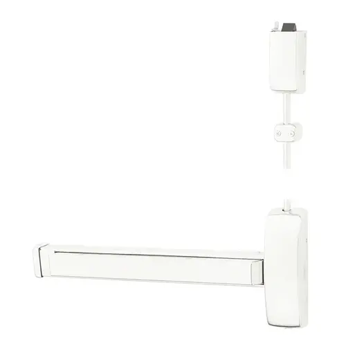 Grade 1 Surface Vertical Rod Exit Device, Wide Stile Pushpad, 32" Device, 84" Door Height, Storeroom Function, L Freewheeling/Vandal Resistant Lever, Less Bottom Rod, Electric Latch Retraction, Less Dogging, Less Lexan Push Pad Touchbar, White Suede Powder Coat Finish, Right Hand Reverse